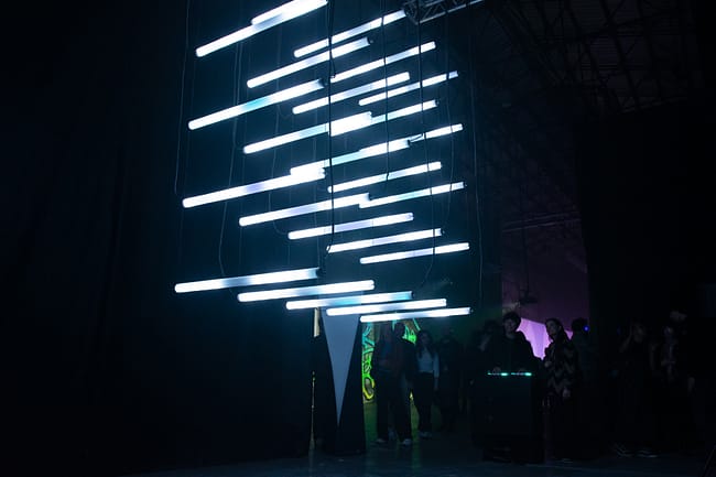 Gli elementi appena nati si trovano dispersi nel caos, in cerca di un ordine. Qui la sinergia tra installazione e pubblico diventa essenziale. Lo spettatore, toccando le superfici conduttive, innesca un dialogo atipico fatto di luce e suono, dà vita a un atto creativo irripetibile e in costante trasformazione.